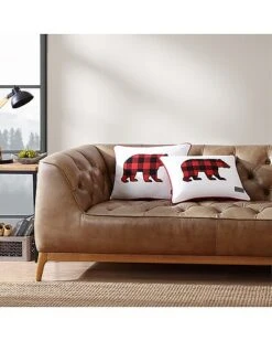 Eddie Bauer Cabin Plaid Bear 100% Cotton Canvas Pillow Cover Set Home