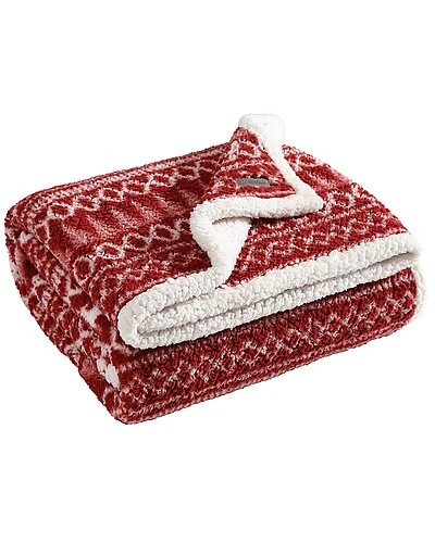 - Design details: super soft and cozy; faux shearling provides superior warmth without the added weight,features signature eddie bauer logo patch,50″x60″, classic eddie bauer fair isle novelty print in white on red ground; reverses to white faux shearling popcorn fleece