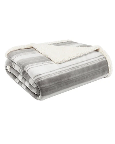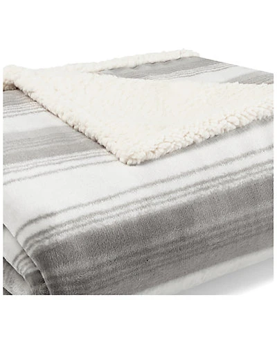 - Design details: Stay warm and cozy with a new throw from Eddie Bauer. The Ashworth Stripe Grey Ultra Soft Plush Sherpa Throw features a white and grey stripe fleece design on one side with a natural sherpa reverse. This neutral design is perfect for any room in your home. Throw is machine washable for easy care. Dimensions: 60″L x 50″W.
