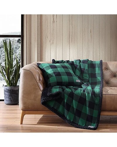 - Design details: super soft and cozy, reversible for alternate styling; features iconic eddie bauer logo patch, standard 100 by oeko-tex certified, eddie bauer signature buffalo check in green and black; reverses to off-white popcorn sherpa