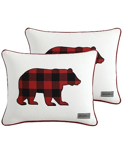 - Design details: featuring red cording all around for tailored look; hidden zipper closure, features signature eddie bauer logo patch, standard 100 by oeko-tex certified, off-white canvas with bear silhouette applique featuring eddie bauer’s iconic cabin plaid check in red and black.