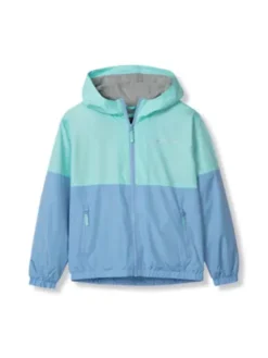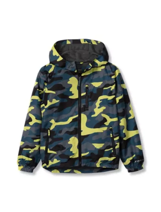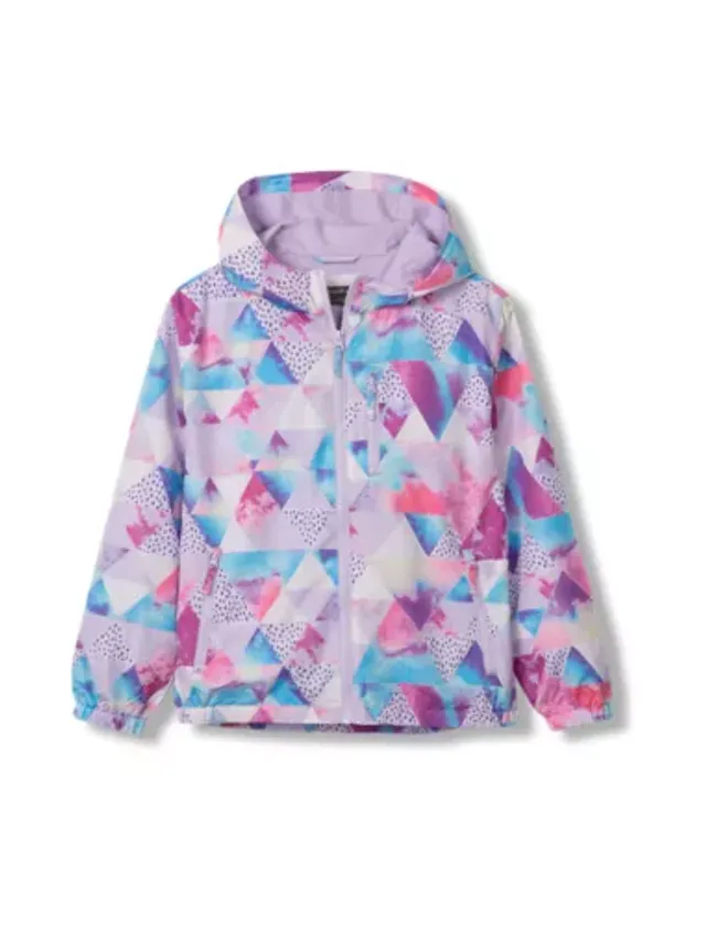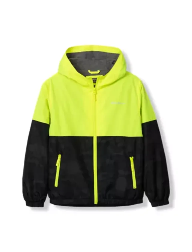 One side of this colorful windbreaker is water-repellent polyester. Turn it inside out, and the soft jersey knit on the other side creates a casual everyday hoodie.