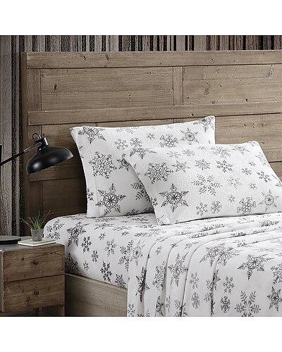 - Design details: super soft plush, smooth and sleek feel,set includes a fully elastic fitted sheet- premium elastic installed all-around to keep the fitted sheet in place; pocket: 12″ fitted sheet pocket depth – fitted sheet fits mattress up to 15″,pillowcases feature side envelope closure with 2″ hem,packaged in self-fabric bag without the use of plastic, tossed snowflake print in medium grey on white ground