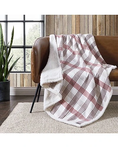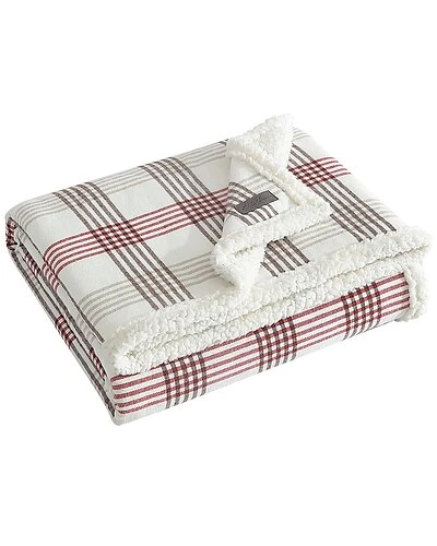 - Design details: super soft and cozy; lightweight, easily packable, and ideal for travel,signature faux shearling trim; features signature eddie bauer logo patch,50″x60″, classic eddie bauer plaid in khaki and reds; reverses to solid white faux shearling