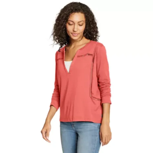 Eddie Bauer Women’s Gate Check 3/4-Sleeve Notch-Neck Taped T-Shirt